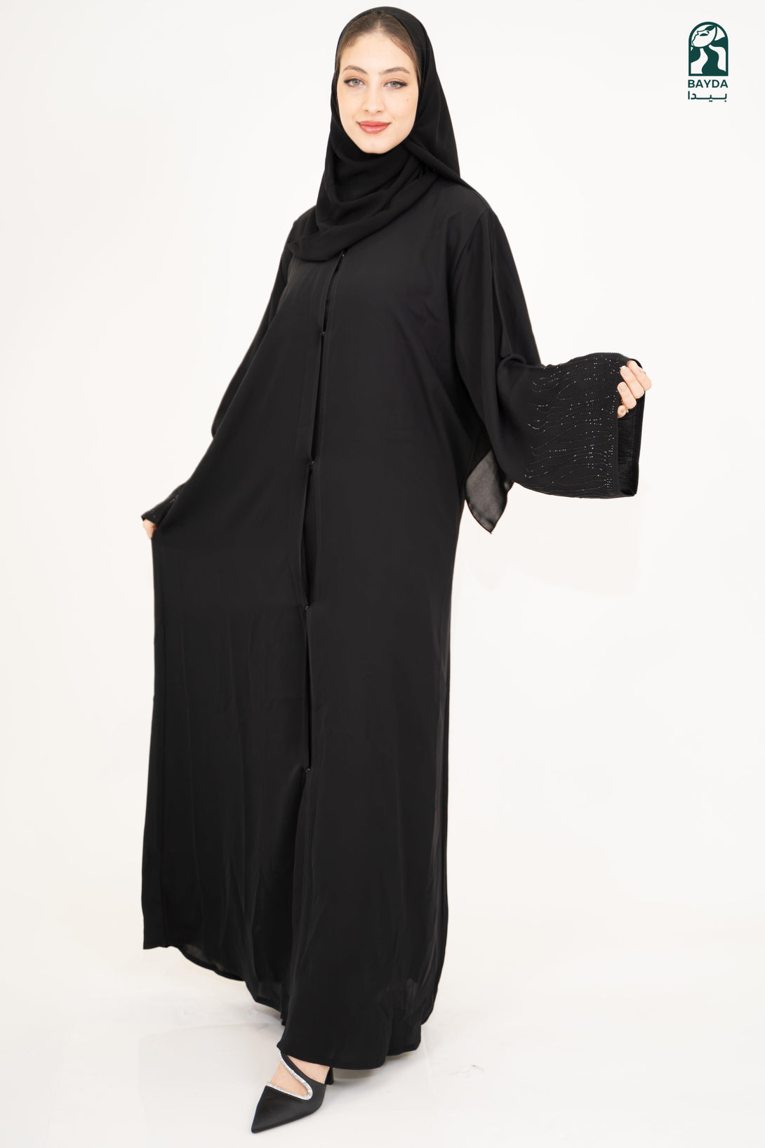 وصف المنتج: إطلالة فاخرة وعصرية مع هذه العباءة بتصميم اكمام واسعة. مصنوعة من خامات مريحة وعالية الجودة،.