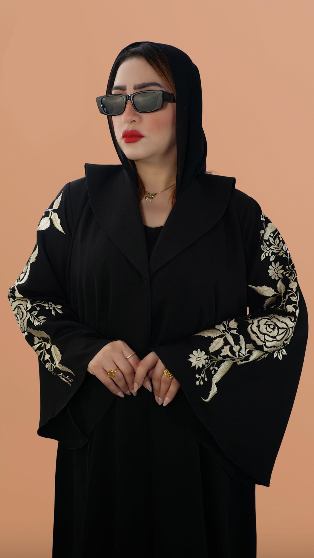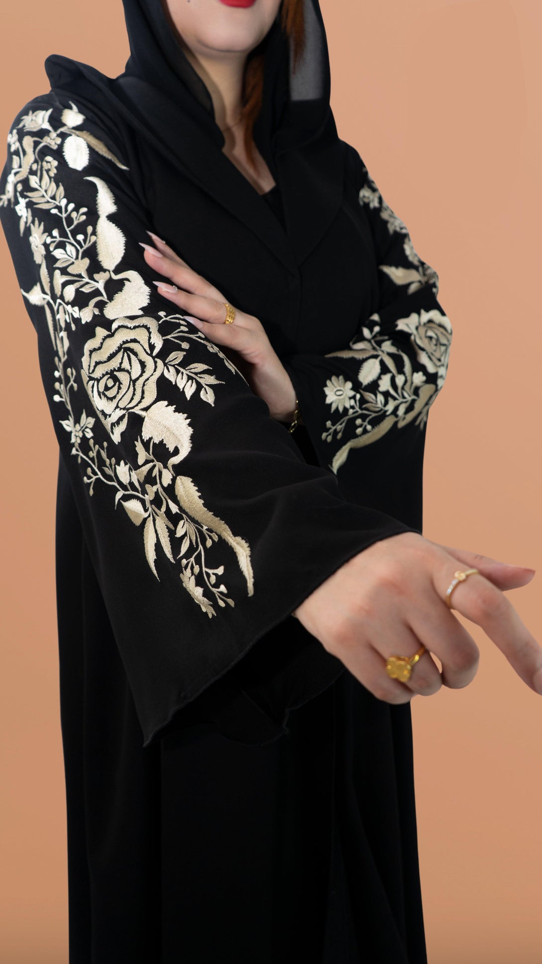 تصميم العباءة: عباية مطرزة بتصميم للأكمام