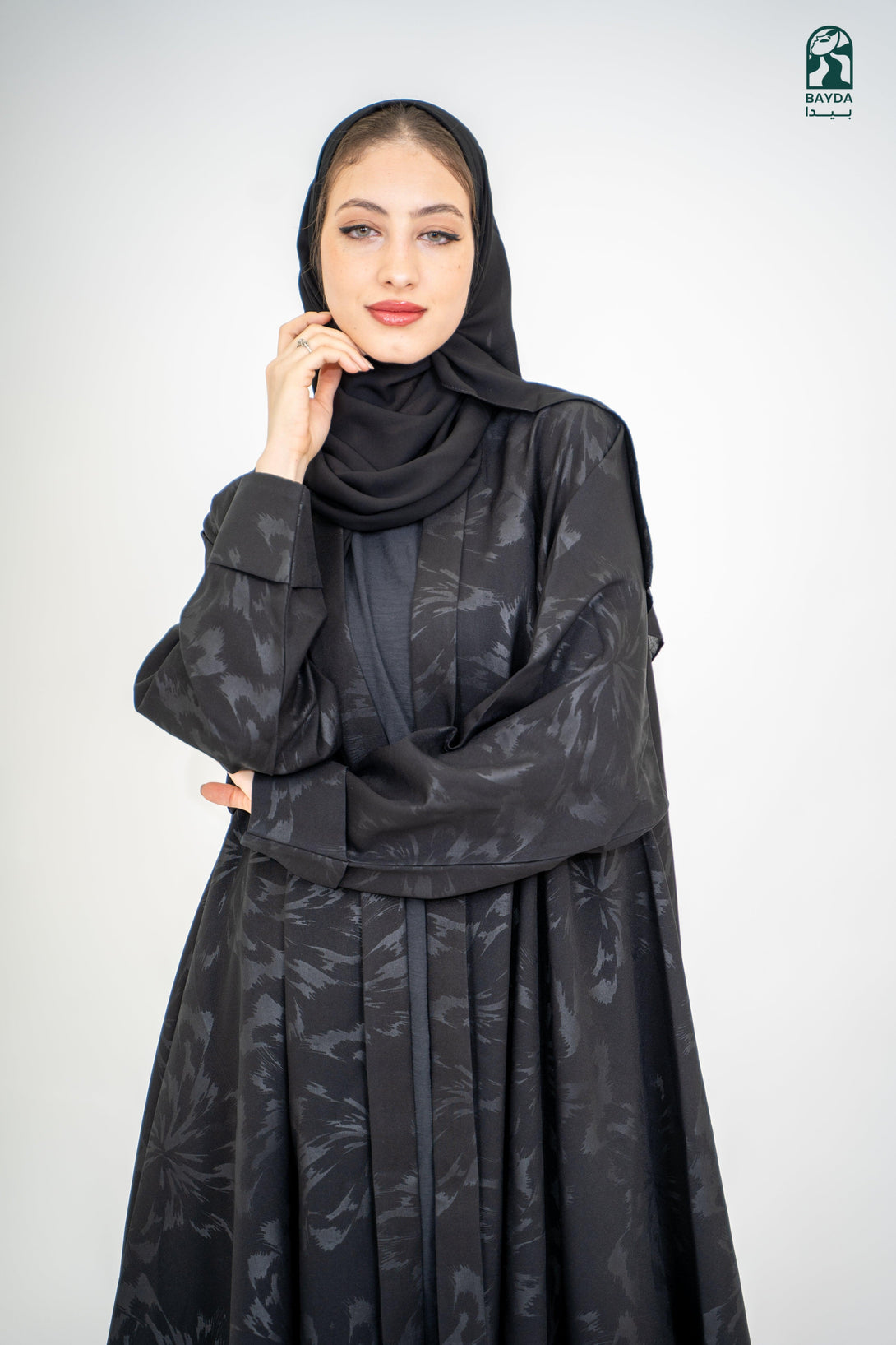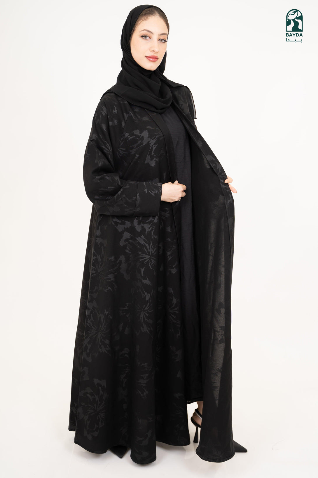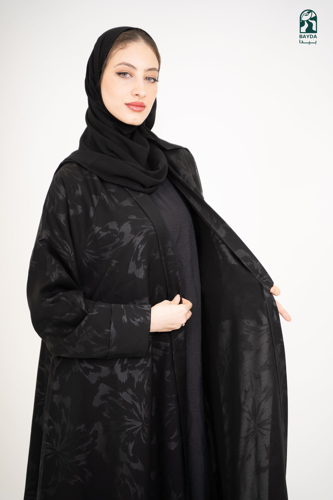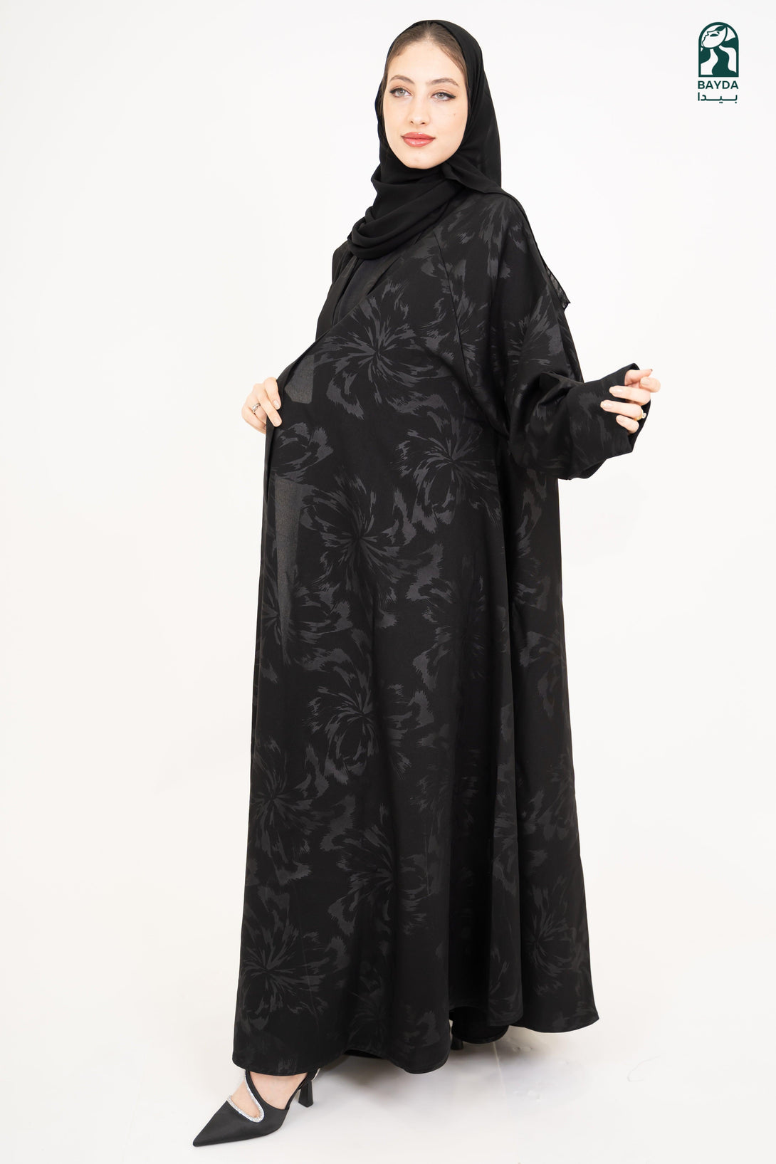 عباءة سوداء فاخرة بخامة عالية الجودة، بتصميم راقٍ ويضمن لك إطلالة مميزة وراحة طوال اليوم.