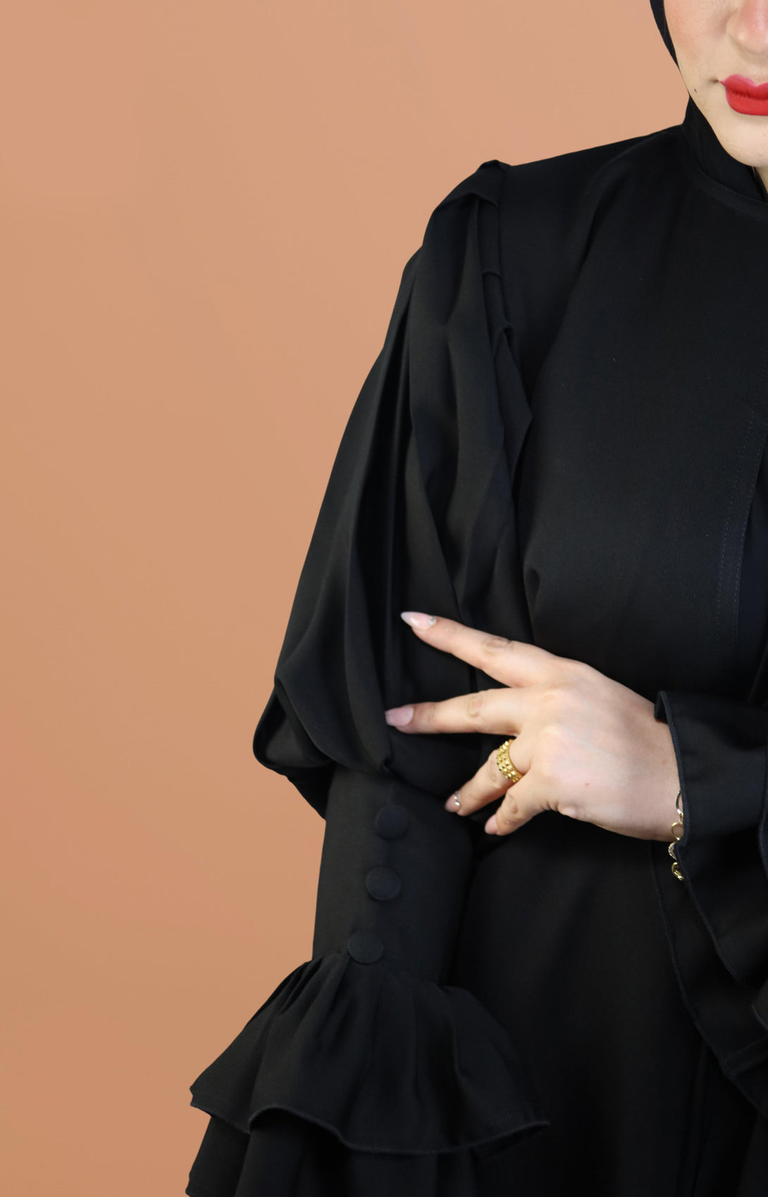 تصميم العباية: عباية سوداء باكمام مميزة مقفلة